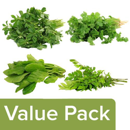 Methi leaves are a very popular ingredient in Indian dishes that has a bitter taste and strong aroma.Coriander leaves are green, fragile with a decorative appearance. They contain minimal aroma and have a spicy-sweet taste. Now do not bother wasting time cutting off the roots as we value your money and time and provide you with the freshest leafy edible parts.With a sweet, nutty and tangent flavour, Palaks are green leafy vegetables that are succulent and spoon-shapedWith the dark green and glossy appearance, curry leaves have a strong flavour and release a tasty aroma when fried in hot oil.